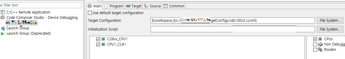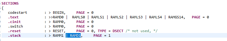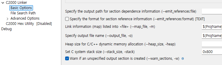 링커 파일에 스택 램 영역을 RAMLS0로 수정 필요.