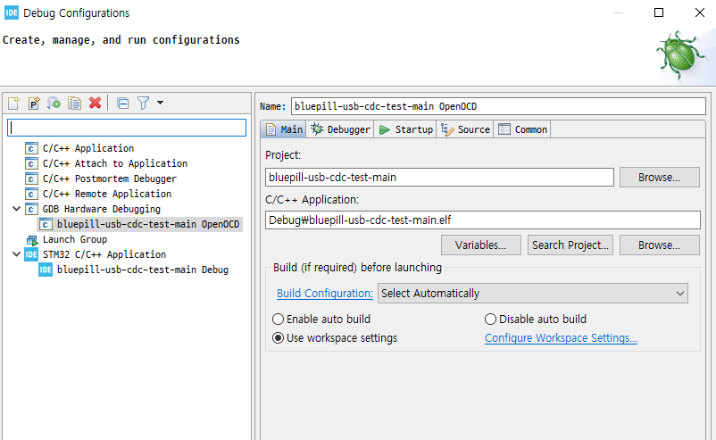 Cube IDE 의 plugin 의 내장 OpenOCD를 사용하려면 하기처럼 설정