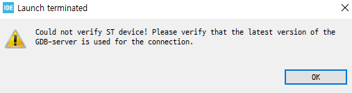 Cube IDE에서 st-link로 실시간 디버깅시 ST MCU가 아니라고 하면서 정지됨.