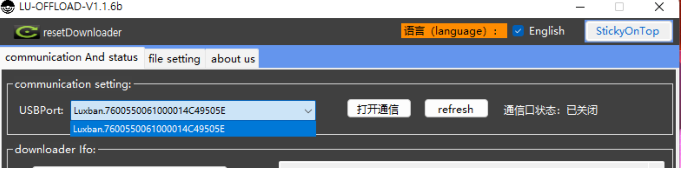 다운로더 장치에 전원 연결 후 내부 메모리에 hex 파일 저장 후 stm32 장치에 펌웨어 다운로드 가능하다.